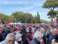 Nach dem Angriff auf das Hauptquartier der italienischen Gewerkschaft CGIL durch faschistische Gruppen und Gegner des Covid19-Impfstoffs fand am 16. Oktober 2021 in Rom eine große antifaschistische Demonstration statt. "Nie mehr Faschismus" war der Titel der Initiative der Gewerkschaften CGIL, CISL und UIL mit den Mitte-Links-Parteien.