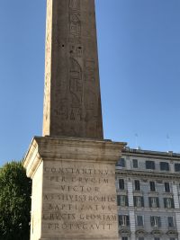 Die älteste Taufkirche der Christenheit steht auf Fundamenten eines Nymphäums und dazugehöriger Nebenräume des Palastes der Laterani in Rom. Mit diesem Baptisterium, das Flavius Valerius Constantinus (zwischen 270 und 288 in Naissus, Moesia Prima; 22. Mai 337 in Anchyrona, einer Vorstadt von Nikomedia), bekannt als Konstantin der Große (griechisch Κωνσταντῖνος ὁ Μέγας) oder Konstantin I., römischer Kaiser von 306 bis 337, reich mit Gold- und Silberskulpturen dekorieren lieβ, wurde der Zentralbau allumfassend in die abendländischen Baukunst anerkannt . Den achteckigen Bau krönt eine Laterne. Der Bronzenportal wahrscheinlich aus den Caracalla-Thermen stammt.
