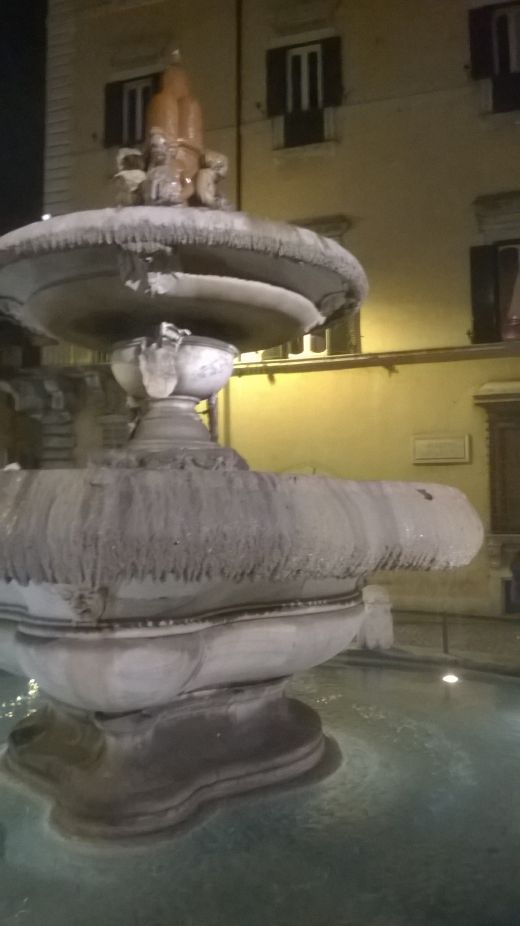 Die groβartige Schauansicht, in der sich die Brunnen Architektur Roms gekrönt und zugleich der Barock rauschend ausklingt, benutzt die von M. Agrippa für seine Thermen gebildete Wasserleitung, die Aqua Vergine, die Nikolaus V. und Sixtus IV. wiederherstellen und Urban VIII. nochmals restaurieren lieβen. Der Trevi-Brunnen, italienisch Fontana di Trevi, ist der populärste und mit rund 26 Meter Höhe und rund 50 Meter Breite größte Brunnen Roms und einer der bekanntesten Brunnen der Welt.Er wurde 1732 bis 1762 nach einem Entwurf von Nicola Salvi im spätbarocken, im Übergang zum klassizistischen Stil, im Anschluss an den Palazzo Poli erbaut.