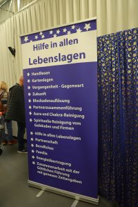 Neben einer großen Verkaufsausstellung mit verschiedensten Produkten wie Schmuck, diversen Ölen etc.. Bot die Esoterikmesse auch eine Vielzahl an interessanten Vorträgen und Workshops. Außerdem wurden verschiedene Dienstleistungen angeboten, der Bogen spannte sich thematisch von der Aktivierung von Selbstheilungskräften bis hin zu Massagen und Meditationen beim Stand vom Sahaja Yogazentrum in Wien. Besucher, die eine Beratung ihrer Zukunft auf der Messe suchten, kamen hier auch voll auf ihre Kosten bei zahlreichen Life Coaches vor Ort. Man möchte mehr über seine Aura erfahren, dies ist beim Stand für Aura Fotos möglich.